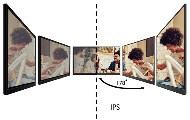 Technologia IPS (In-Plane Switching) zapewnia dokładne odwzorowanie kolorów i obrazu pod dowolnym kątem. Szerokie 178 ° poziome i pionowe kąty widzenia, zapewniają jednolity obraz, wyświetlany dla wielu osób w jednym pomieszczeniu.