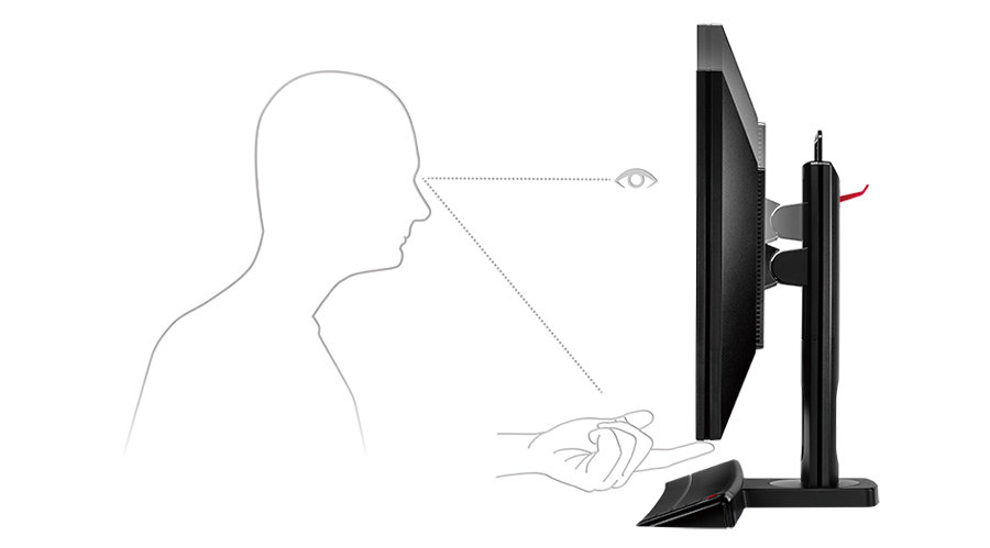 Regulowana Wysokość Podstawy może być obsługiwany za pomocą jednego palca, dzięki czemu można łatwo ustawiać wysokość monitora do preferowanego kąta widzenia, jednocześnie maksymalizując komfort gry.