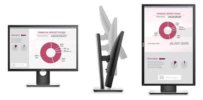Możesz łatwo dopasować monitor, ustawiając odpowiedni kąt, wysokość i położenie, tak aby bez problemów korzystać z kilku wyświetlaczy.