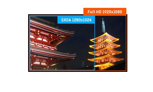 | Full HD Dzięki rozdzielczości natywnej 1920 x 1080p Twój LCD jest gotowy wyświetlać obrazy wysokiej rozdzielczości. Oznacza to również, że na ekranie zmieści się około 60% więcej informacji niż na monitorze z rozdzielczością 1280 x 1024. |