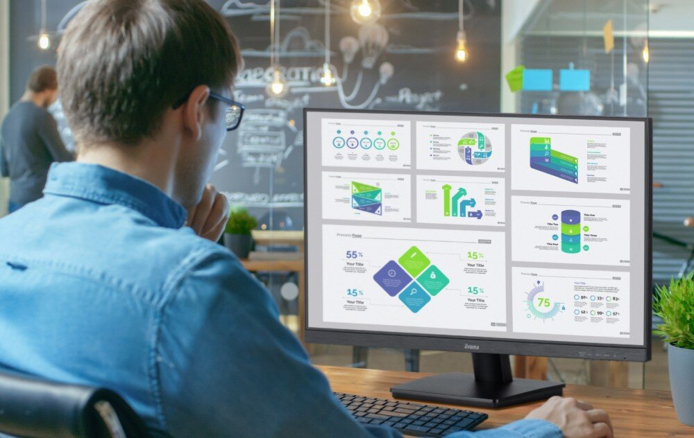 IIYAMA ProLite XU2293HSU-B6 dysponuje 21,5-calową matrycą IPS, która cieszy się uznaniem dzięki swoim szerokim kątom widzenia wynoszącym 178° oraz naturalnemu odwzorowaniu kolorów pokrywającemu 96% palety sRGB. Rozdzielczość Full HD (1920 x 1080 px) w połączeniu z kontrastem statycznym 1000:1 oraz jasnością 250 cd/m² natomiast sprawia, że obraz jest wyraźny i pełen szczegółów.
