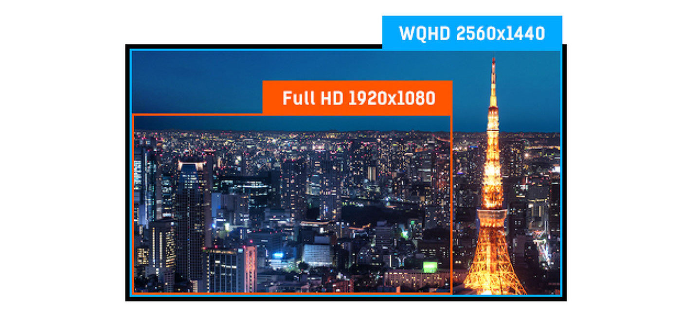 WQHD Dzięki rozdzielczości natywnej WQHD 2560 x 1440 (3,7 megapiksela) ten panel wyświetla niemal 77% więcej informacji niż w przypadku rozdzielczości Full HD. |