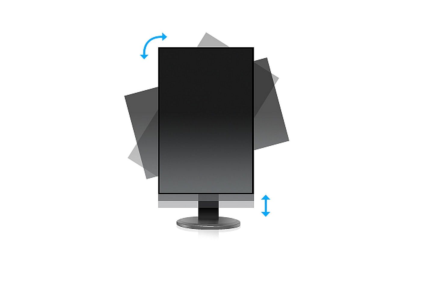 Stopka z regulacją wysokości umożliwia dostosowanie położenia ekranu do własnych preferencji. Rotacja ekranu umożliwia zmianę pozycji ekranu z poziomej (pejzaż) do pionowej (portret). To funkcja szczególnie przydatna w pracy z długimi arkuszami lub tekstem.