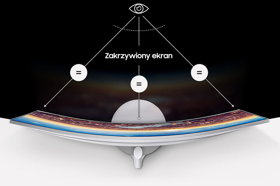 Zakrzywiona linia ekranu jest dostosowana do kształtu oka, dzięki czemu każdy punkt na monitorze znajduje się w dokładnie tej samej odległości od centrum oka. To właśnie odróżnia zakrzywione matryce od tradycyjnych, płaskich modeli. Dzięki odpowiednio wyprofilowanej linii ekranu opartej o okrąg o promieniu 1800 mm, oczy są znacznie mniej zmęczone, nawet podczas wielogodzinnej pracy lub długiego korzystania z wyświetlacza. Wysoka ergonomia urządzenia gwarantuje większe bezpieczeństwo dla oczu, a także zapewnia wyższy komfort użytkownika.