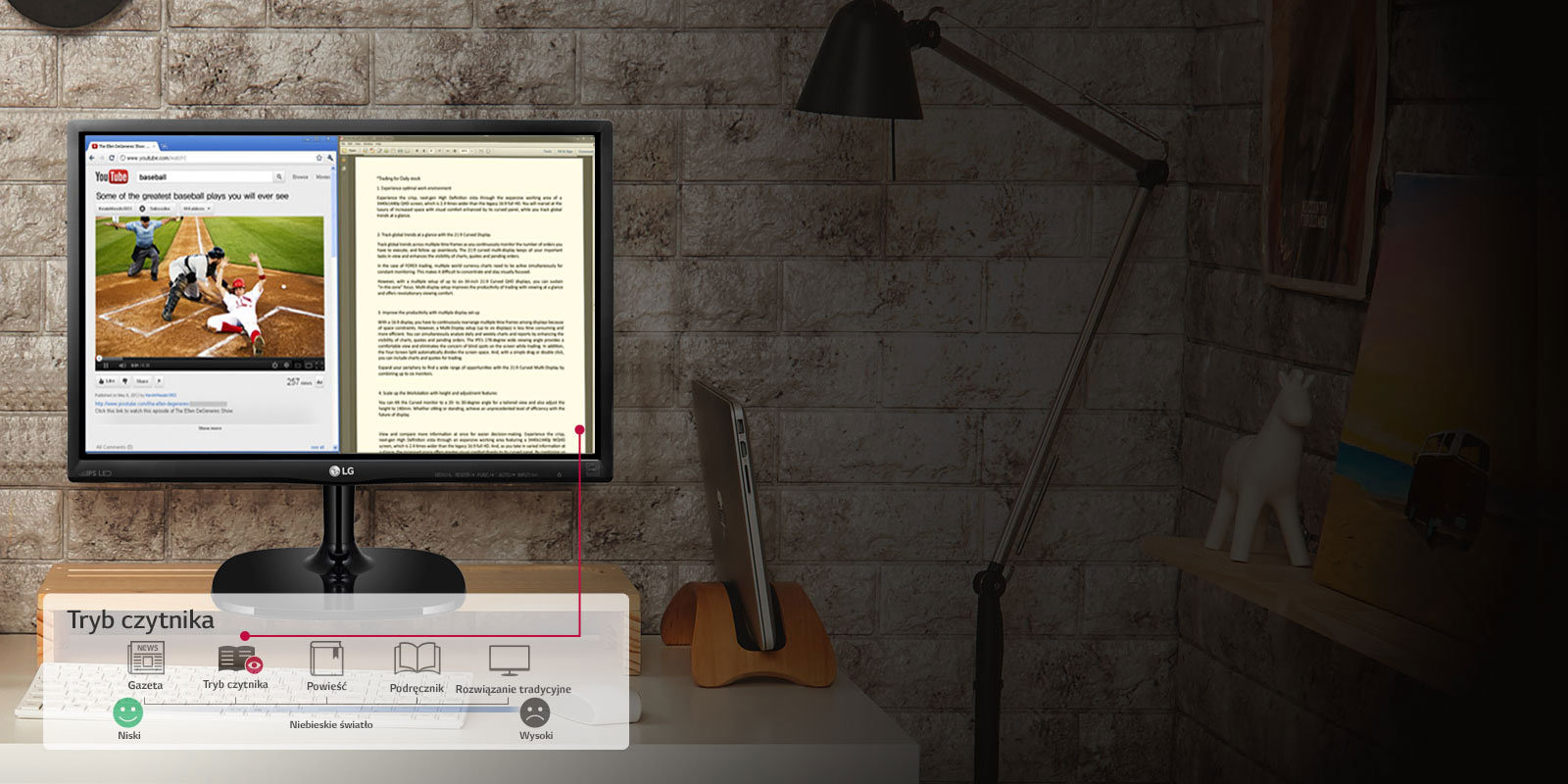 | Chroń swoje oczy i ciesz się komfortem Technologie Flicker Safe i Reader Mode zwiększają komfort oczu przez ochronę ich przed szkodliwym światłem niebieskim i prawie całkowitą redukcję migania.D21 |