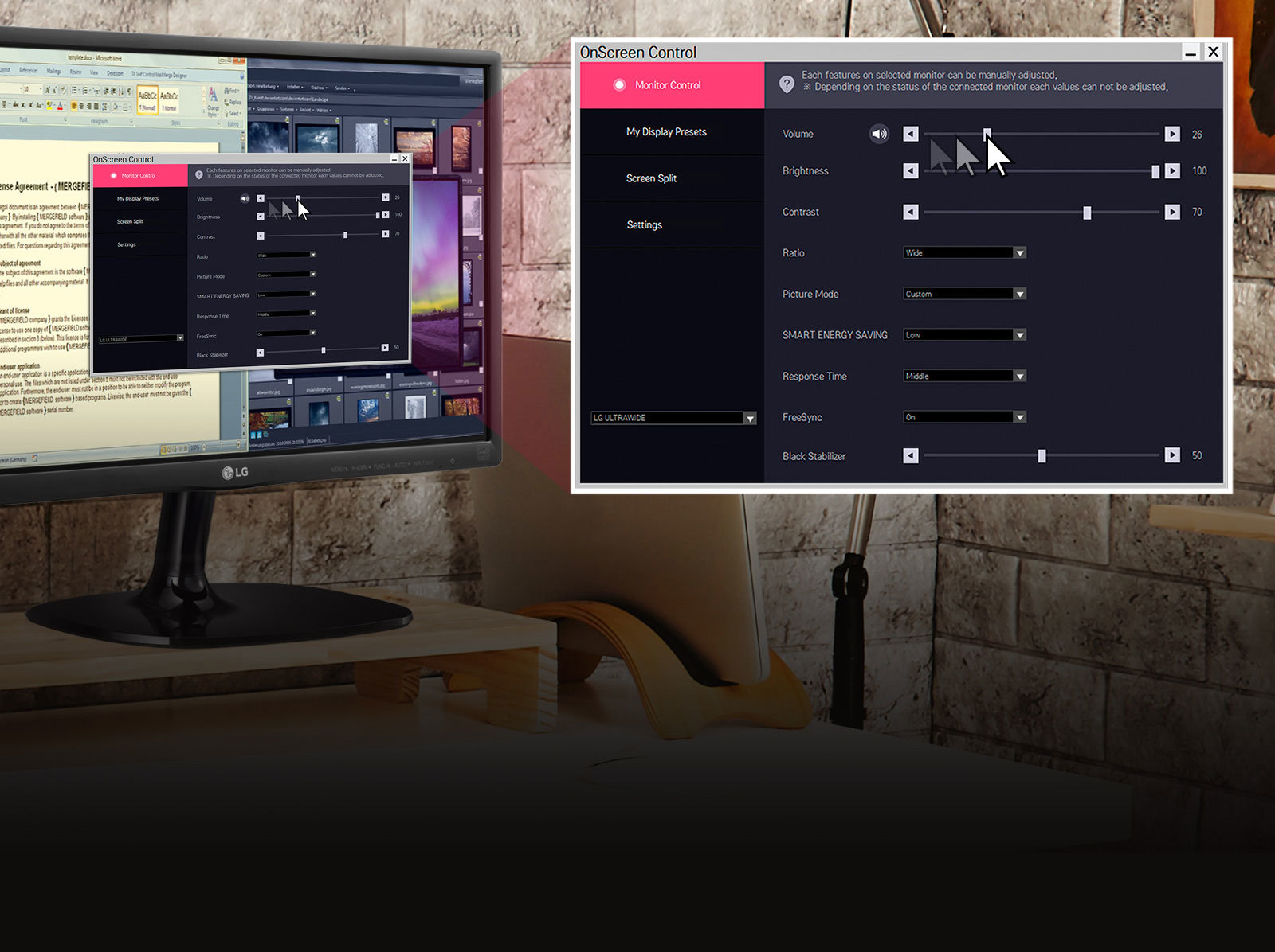 | Konfiguracyjne dostępne za jednym kliknięciem Dzięki funkcjom OnScreen Control i My Display Presets dostosujesz ustawienia monitora zaledwie kilkoma kliknięciami myszy. |