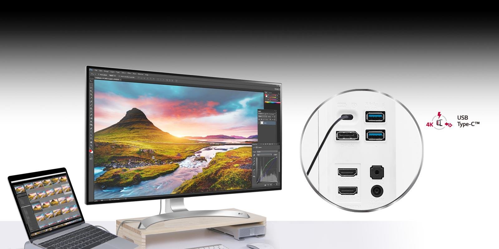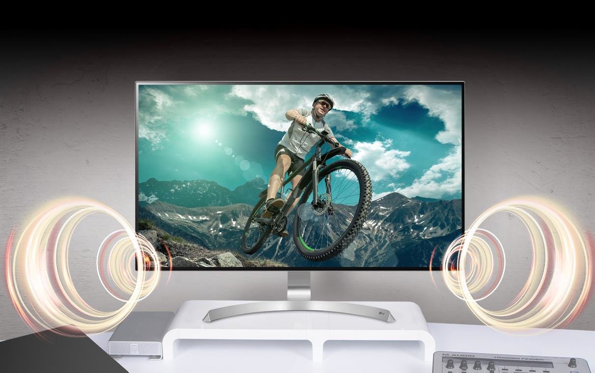 Wbudowane w monitor 32UD99 głośniki z funkcją Rich Bass zapewniają niezapomniane wrażenia. Delektuj się trójwymiarowym dźwiękiem z monitora.