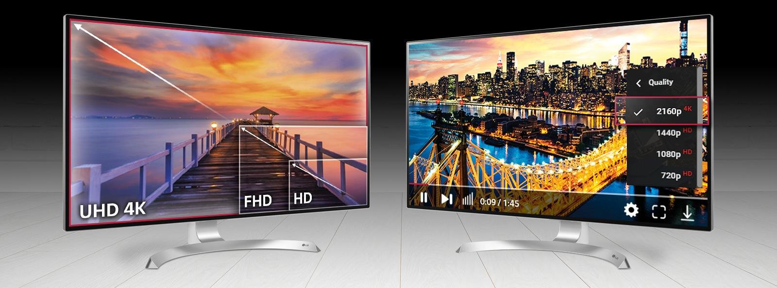 Pojawia się coraz więcej usług strumieniowania wideo w jakości 4K. Już teraz możesz delektować się milionami nagrań 4K w rozdzielczości UHD 4K (3840 x 2160). Możesz też przejrzeć własne nagrania 4K, zanim je wyślesz na serwer. Zachwyci Cię szczegółowość obrazu, jaką zapewni monitor LG UHD 4K Twoim pracom.