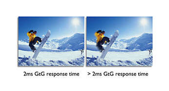 czas reakcji do 2 ms SmartResponse to ekskluzywna technologia firmy Philips umożliwiająca wykorzystywanie różnych prędkości pracy. Po jej włączeniu następuje automatyczne dostosowanie czasu reakcji do wymagań konkretnych zastosowań, takich jak gry lub filmy, które wymagają szybszego czasu reakcji w celu uzyskania obrazu bez migotania, opóźnień i widm. |