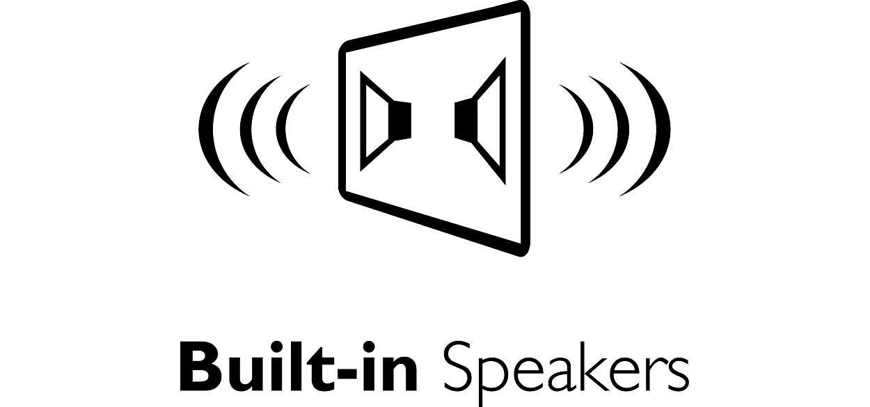 dźwięk dzięki głośnikom o mocy 2 x 2 W RMS Teraz można korzystać z multimediów i aplikacji społecznościowych, słuchając dźwięku stereo. Te wbudowane głośniki nie tylko doskonale brzmią, ale także pomagają uniknąć bałaganu spowodowanego zewnętrznymi przewodami oraz zapewniają oszczędność miejsca. |