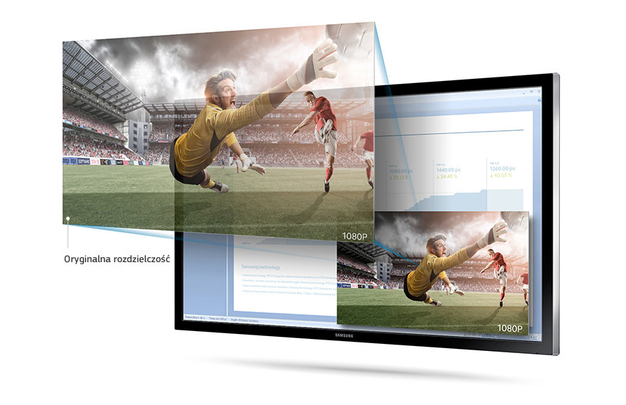 obrazie Najnowsza technologia Picture-in-Picture(PIP) 2.0 umożliwia oglądanie obrazu z kilku źródeł jednocześnie, bez negatywnego wpływu na jakość któregokolwiek z nich – niezależnie od rozdzielczości, PIP 2.0 wyświetla je w pełnej jakości. Funkcja ta obsługuje wszystkie rozdzielczości aż do 1080p, a jej parametry możesz zmieniać w każdej chwili, w zależności od aktualnych potrzeb. Skup się na kilku zadaniach jednocześnie, bez żadnych kompromisów. |