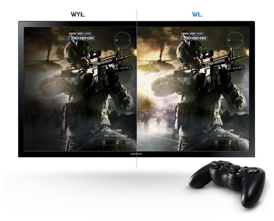 tryb dla graczy Naciśnij przycisk, a uzyskasz parametry ekranu idealnie dostosowane do gier. Tryb gier natychmiast zmienia ustawienia monitora, tak aby optymalizując istotne dla gier wideo parametry. Inteligentnie wzmacnia kolory i zmienia poziom kontrastu, Uwydatnia to ciemne elementy i rozjaśnia jasne punkty ekranu, zapewniając pełny pogląd akcji. Zmniejsza przy tym opóźnienie wyświetlania obrazu, dzięki czemu zyskujesz pewność, że nadąży za akcją i nigdy cię nie zawiedzie. |