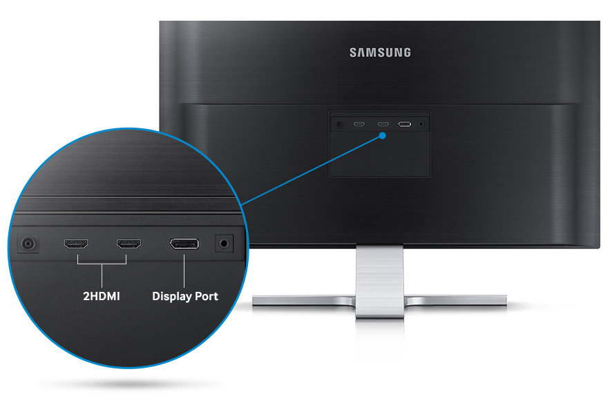 najpotrzebniejszych złączy Monitor Samsung UHD wyposażono w najpopularniejsze wejścia wideo, zapewniając obsługę szerokiej gamy urządzeń. Dwa cyfrowe łącza HDMI umożliwiają podłączenie do monitora komputera, konsoli do gier lub dekodera telewizji satelitarnej. W jednym miejscu zgromadzisz swoje ulubione źródła rozrywki, by móc płynnie przełączać się pomiędzy nimi. Ponadto dostępny DisplayPort umożliwia podłączanie i korzystanie z zawartości innych urządzeń obsługujących standard UHD. *Obsługuje HDMI 1.4 (3 840 x 2 160, 30 Hz) oraz Display Port 1.2 (3 840 x 2 160, 60 Hz) |