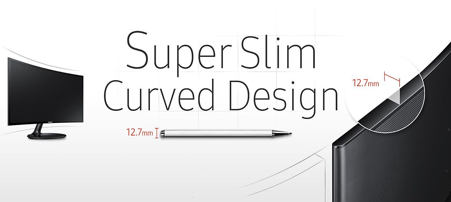 - Wąski jak długopis (12,7 mm), zakrzywiony panel jest o ponad połowę smuklejszy od swoich poprzedników.