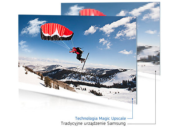 Magic Upscale Technologia, która podnosi jakość materiałów o niższej rozdzielczości źródłowej, zapewniając odpowiednią ostrość obrazu i intensywność barw |
