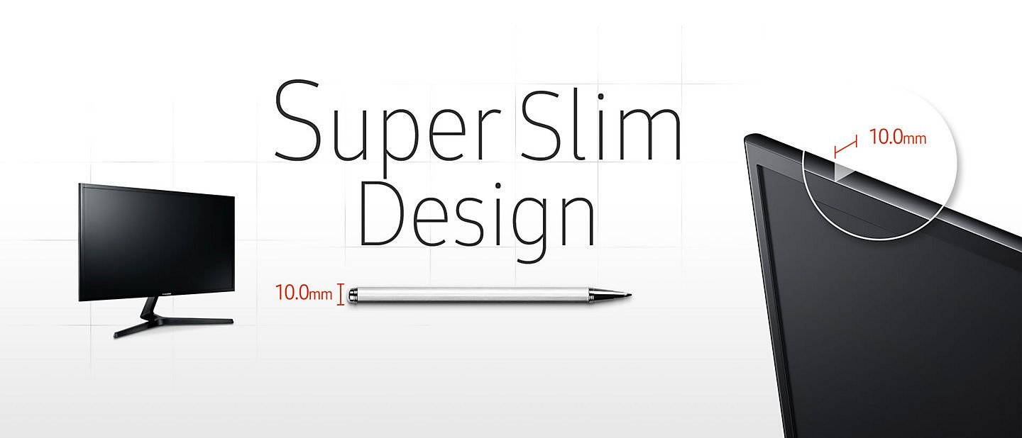 Niezwykle smukły monitor jest dwukrotnie cieńszy niż standardowe modele Samsung - ma tylko 10 mm, czyli tyle co długopis. Minimalistyczna, okrągła podstawa eksponuje eleganckie wzornictwo wyświetlacza, a całość podkreślona jest przez stylizowany, tylny panel.