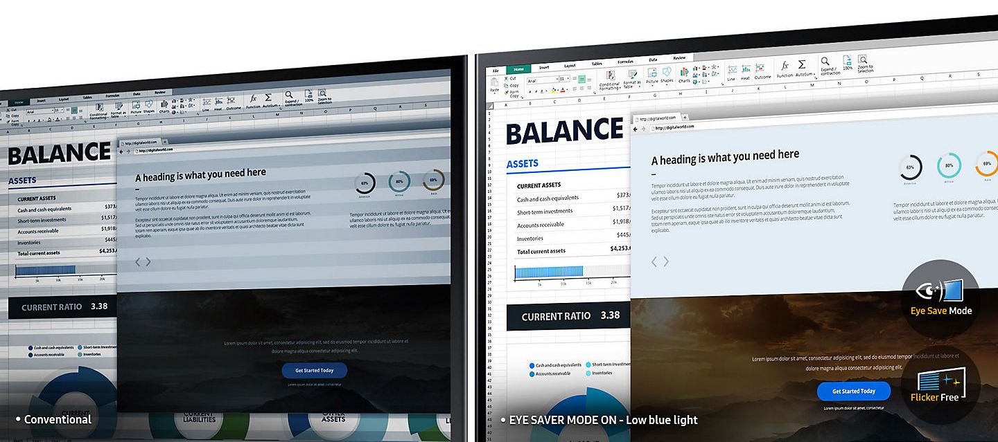 Od teraz praca i rozrywka staną się znacznie przyjemniejsze - nawet po wielu godzinach. Tryb Eye Saver redukuje emisję męczącego wzrok światła niebieskiego. Z kolei technologia Flikcer Free chroni Twoje oczy eliminując migotanie ekranu występujące w tradycyjnych monitorach. Zadbaj o swój komfort i zdrowy wzrok.