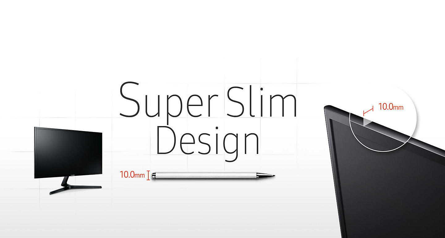 Niezwykle smukły monitor jest dwukrotnie cieńszy niż standardowe modele Samsung - ma tylko 10 mm, czyli tyle co długopis. Minimalistyczna, okrągła podstawa eksponuje eleganckie wzornictwo wyświetlacza, a całość podkreślona jest przez stylizowany, tylny panel.