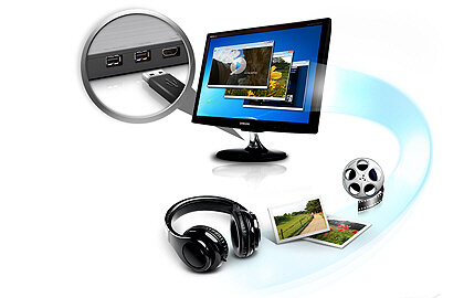 Jeśli nie możesz się doczekać, aby oglądać swoje zasoby cyfrowe: filmy, zdjęcia lub pliki muzyczne, nie trać cennego czasu i użyj funkcji ConnectShare™. Wystarczy podłączyć dysk HDD lub USB do portu USB monitora HDTV TB350, a funkcja ConnectShare™ umożliwi oglądanie zapisanych plików bez konieczności włączania komputera czy notebooka. To kolejne udogodnienie dla użytkowników, którzy mogą korzystać z łatwiejszego i wygodniejszego dostępu do multimediów.
