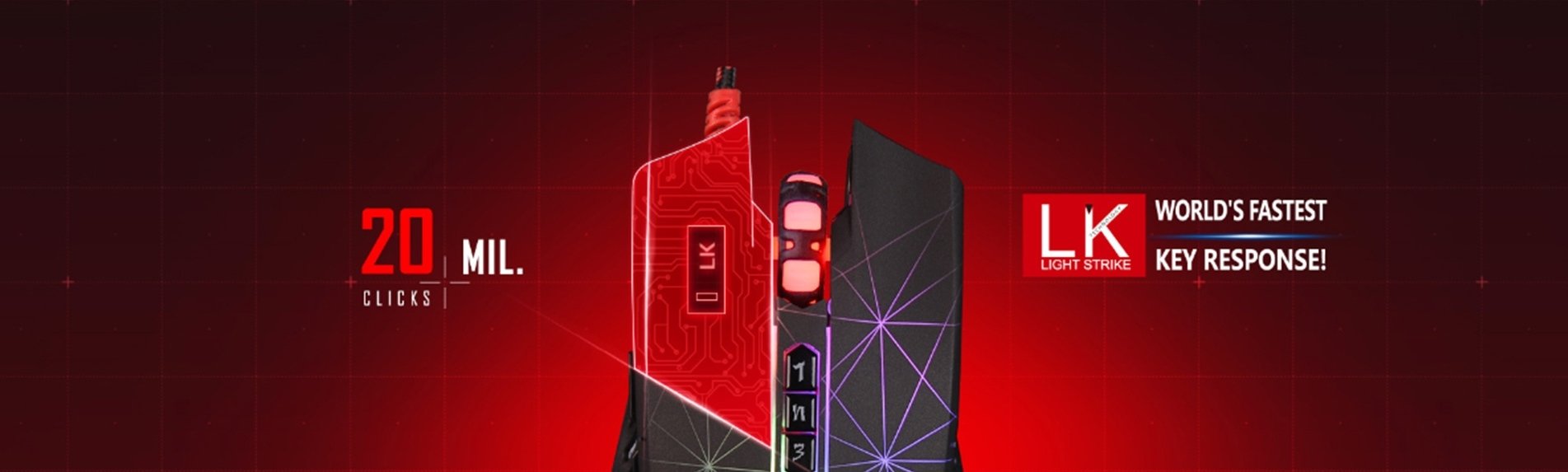 LIGHT STRIKE II to rewolucyjna technologia mechanicznych przełączników optycznych LIGHT STRIKE, wykorzystujących do aktywacji przycisku sensor podczerwieni. LK zapewnia jedynie 0,2 ms opóźnienia oraz ponad 100 mln. kliknięć. Switche Infrared wyeliminowały również efekt podwójnego kliku. Nowa technologia gwarantuje użytkownikowi precyzję działania bez żadnych opóźnień i jest do 30ms szybsza aniżeli myszy wykorzystujące tradycyjne metalowe micro-switche. Light Strike sprawia, że mamy do czynienia z absolutnie najszybszą myszą gamingową na świecie, która sprawi, ze nawet najbardziej wymagający użytkownicy poczują się w pełni usatysfakcjonowani i zadowoleni ze swojego wyboru.