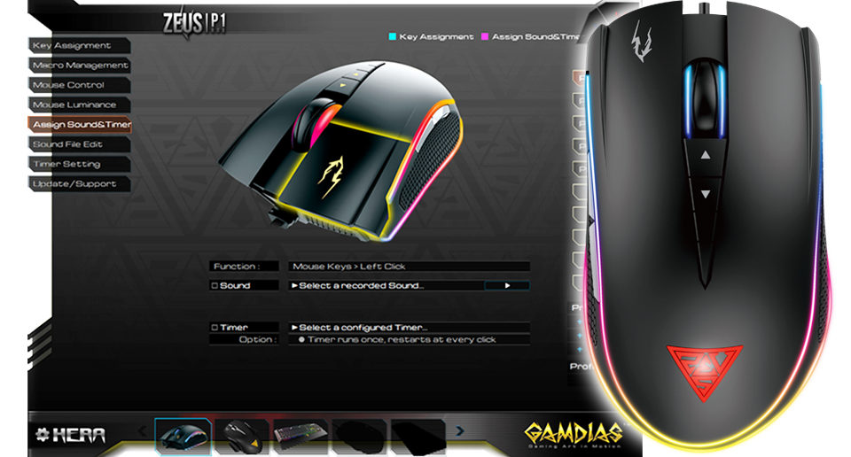 Dzięki 16.8 miliona kolorów RGB dostosowanych do podświetlania 2 stref Zeus M1 jest najbardziej unikatową myszką do gier!.