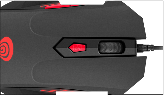 Szybkiej zmiany rozdzielczości sensora dokonamy za pomocą specjalnego przycisku umieszczonego obok scrolla – pozwoli on ustawić jedną z trzech wartości DPI: 800, 1200 lub 2000.
