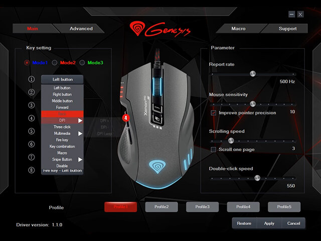 4 INDYWIDUALNE DPIXenon 210 umożliwia Ci ustawienie swoich preferencji co do rozdzielczości DPI na 4 różnych poziomach, między którymi szybko przełączysz się przy pomocy jednego przycisku. | |