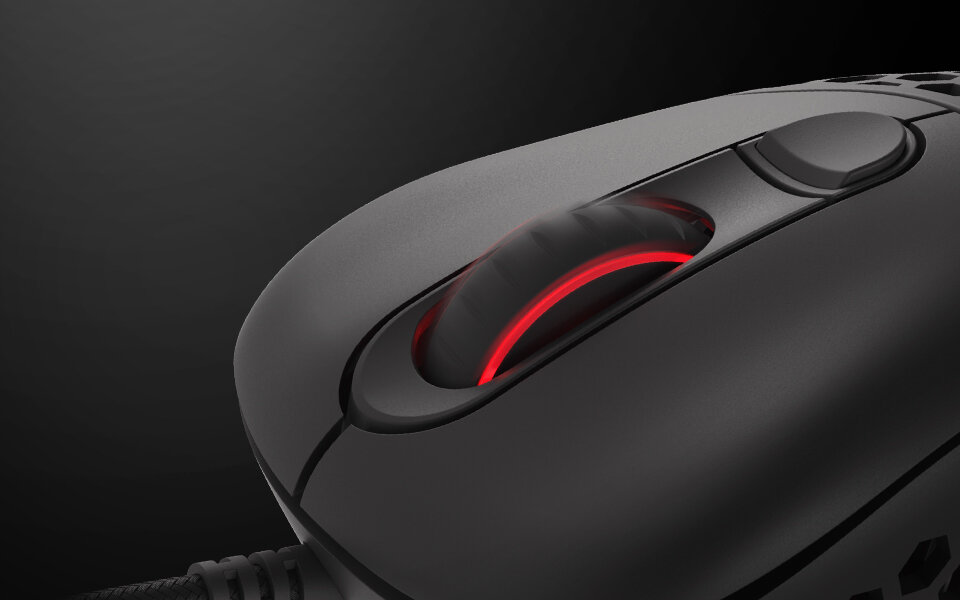 |   PERFEKCYJNY SCROLLOdczuj każdy pojedynczy klik scrolla dzięki wyraźnemu uskokowi i poczuj pewność kontrolowania jego pracy. W połączeniu ze starannymi wyżłobieniami i możliwością zaprogramowania funkcji ‘Scroll Up’ i ‘Scroll Down’ – otrzymujemy jeden z najlepszych, najbardziej dopracowanych scrolli w myszkach.  |