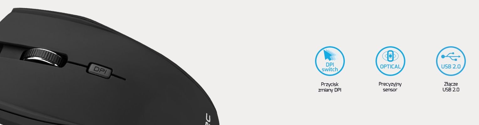 Symetryczny kształt zapewnia odpowiedni poziom wygody niezależnie od tego, którą ręką trzymamy mysz.