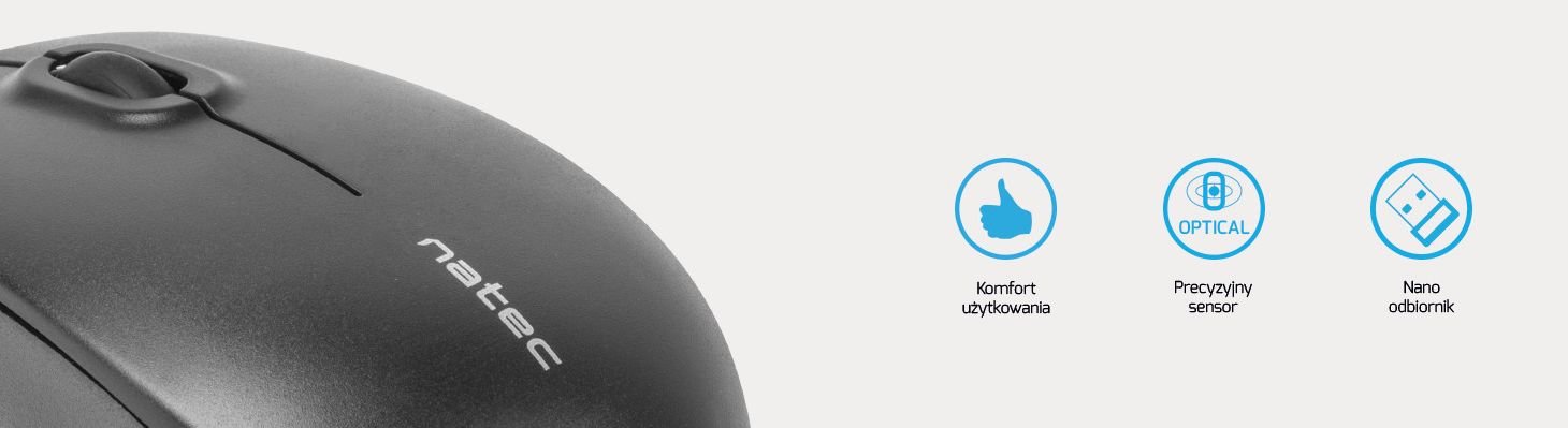 Mysz Natec Merlin została wyposażona w precyzyjny sensor optyczny o rozdzielczości 1600 DPI oraz wysokiej jakości nano odbiornik 2,4GHz. Sensor działa bez zakłóceń na niemal każdej powierzchni.