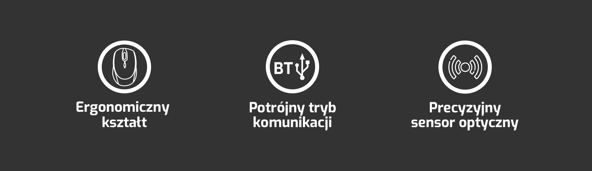 Natec Osprey pozwoli Ci na bezproblemowe połączenie myszy z trzema urządzeniami. Potrójny tryb komunikacji obejmuje łączność Bluetooth 5.0, Bluetooth 3.0 oraz odbiornik USB 2,4 GHz. Dzięki temu nie musisz za każdym razem od nowa parować myszki ze swoim sprzętem. Osprey zawsze będzie gotowy do pracy.