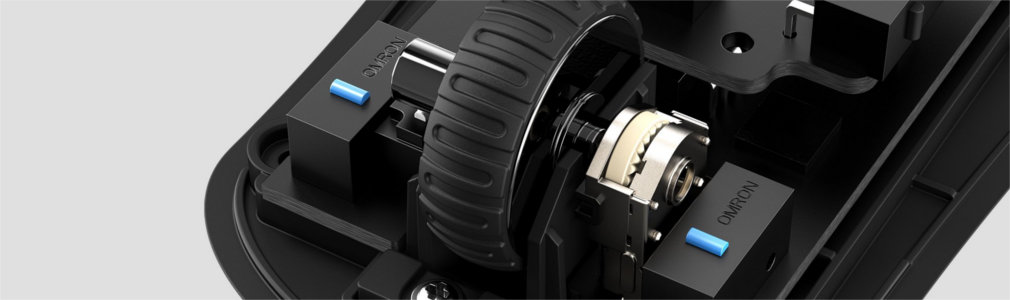 Czułe i niezawodne przełączniki Omron Czułe przełączniki Omron o przewidywanej trwałości do 50 milionów kliknięć pozwalają poczuć każde kliknięcie i niezawodnie je przekazują. |