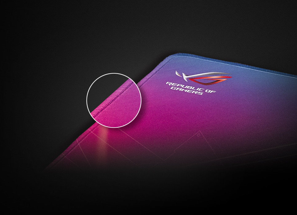 PEŁNOKOLOROWE SZWY ZAPOBIEGAJĄCE STRZĘPIENIU Podkładka ROG Strix Edge wykorzystuje najnowocześniejszą technologię pełnokolorowych szwów, która chroni materiał przed strzępieniem się, jednocześnie gwarantując zachowanie spójnej estetyki aż po same krawędzie. |