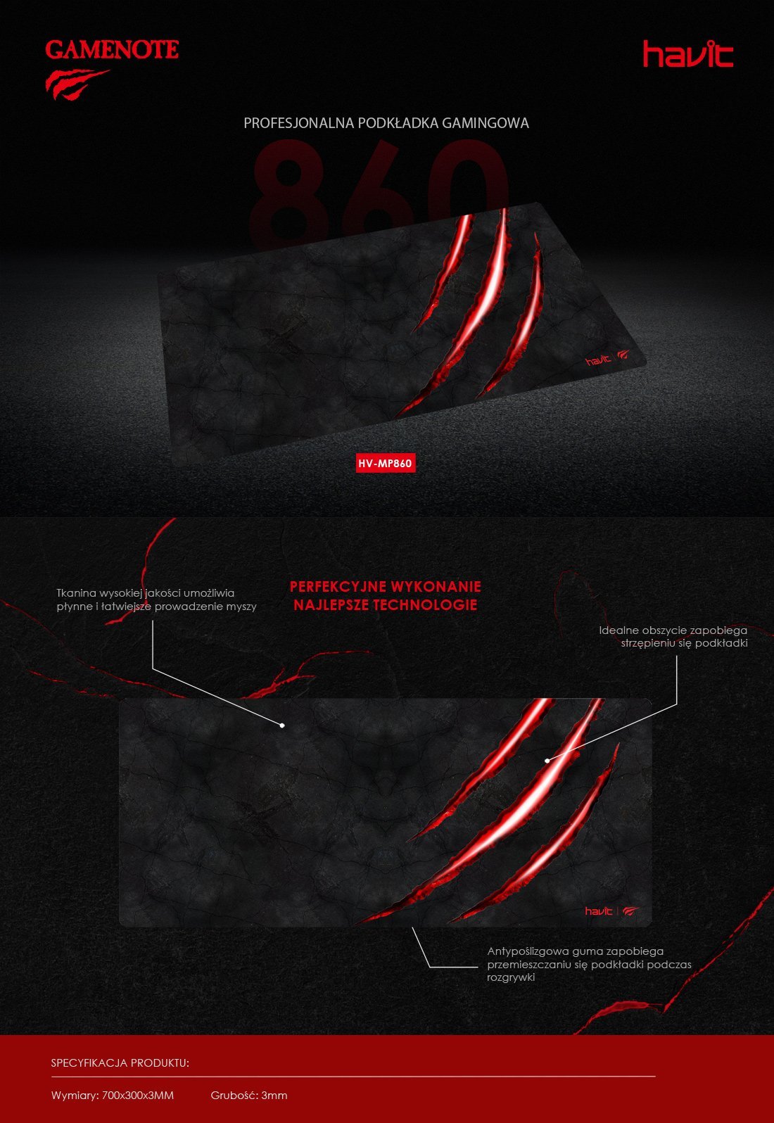 Profesjonalna podkładka gamingowa pod mysz komputerową to doskonałe narzędzie aby usprawnić pracę każdej myszy. Podkładka marki Havit została zaprojektowana z myślą o najbardziej wymagających graczach. Dzięki specjalistycznej strukturze materiału, podkładka pozwala na łatwiejsze prowadzenie myszy, a gumowa podstawka zabezpiecza przed przesunięciem. Grubość podkładki jest najbardziej optymalna dla każdego użytkownika - nie przekracza 3mm. Duży rozmiar podkładki pozwala nie tylko na umieszczenie na niej myszy ale również klawiatury lub innych akcesoriów komputerowych.