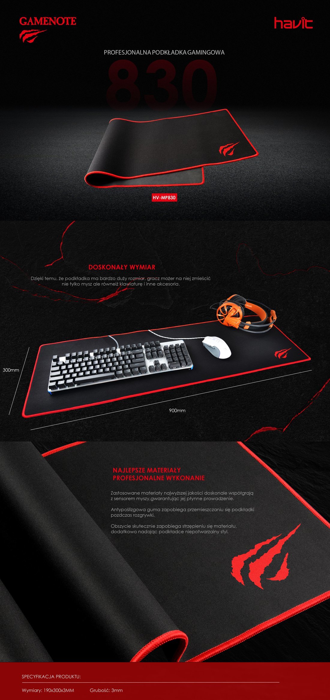 Podkładka pod mysz HAVIT GAMENOTE HV-MP830