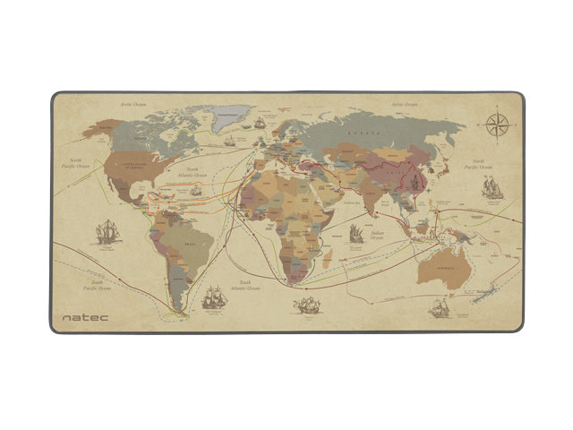 UNIKATOWA I PRAKTYCZNA GRAFIKAGłównym wyróżnikiem Natec Discoveries jest unikatowa grafika przedstawiająca mapę polityczną świata wraz z zaznaczonymi głównymi wyprawami ery wielkich odkryć geograficznych. Na szlakach umieszczono nazwiska odkrywców, daty poszczególnych ekspedycji oraz nazwy i szkice okrętów flagowych. Dzięki temu podkładka nie tylko ułatwia posługiwanie się myszką, ale także pomaga w pracy, nauce czy zabawie. Dodatkowo stonowana kolorystka oraz zaprojektowanie mapy w stylu vintage sprawia, że podkładka stanie się ciekawym uzupełnieniem wystroju wnętrza. | |