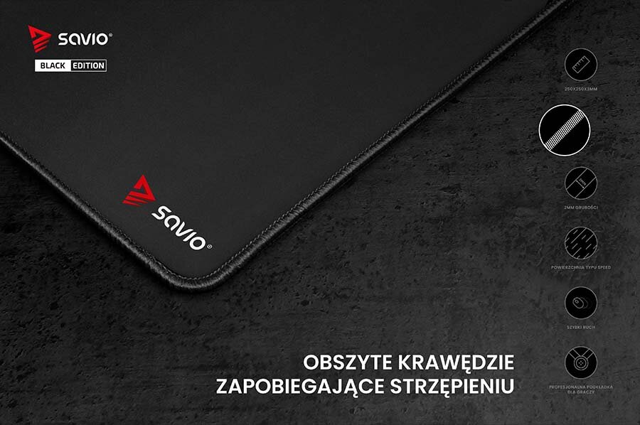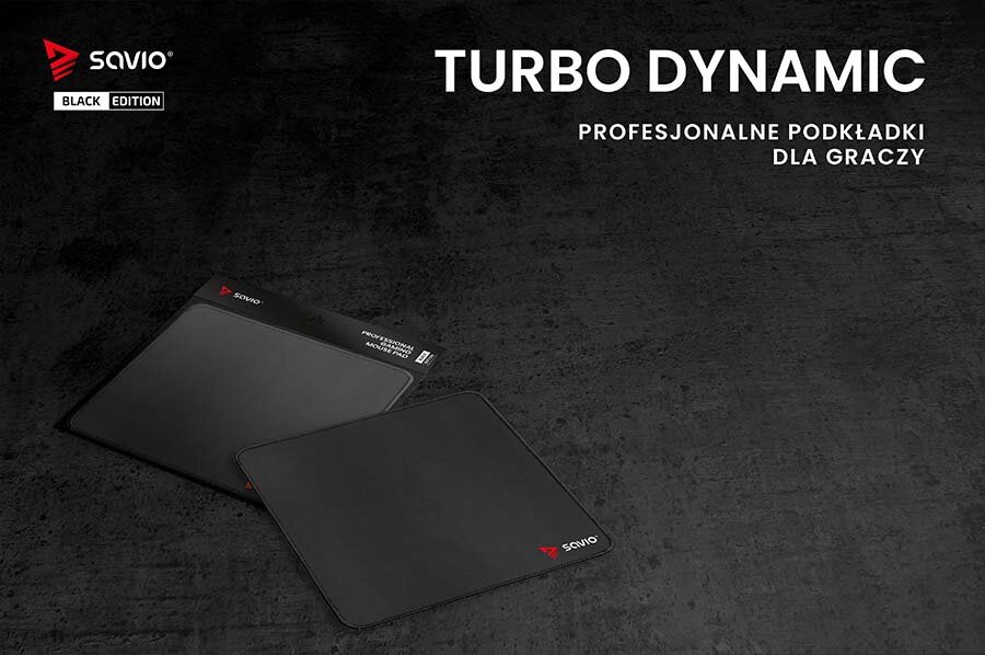 Seria podkładek Savio Black Edition Turbo Dynamic została zaprojektowana z myślą o wymagających graczach, którzy cenią sobie niebywałą szybkość przy zachowaniu idealnej kontroli nad myszką.