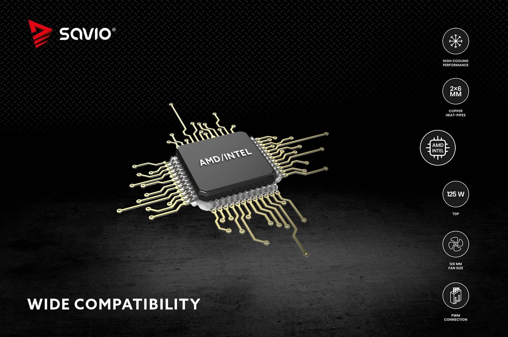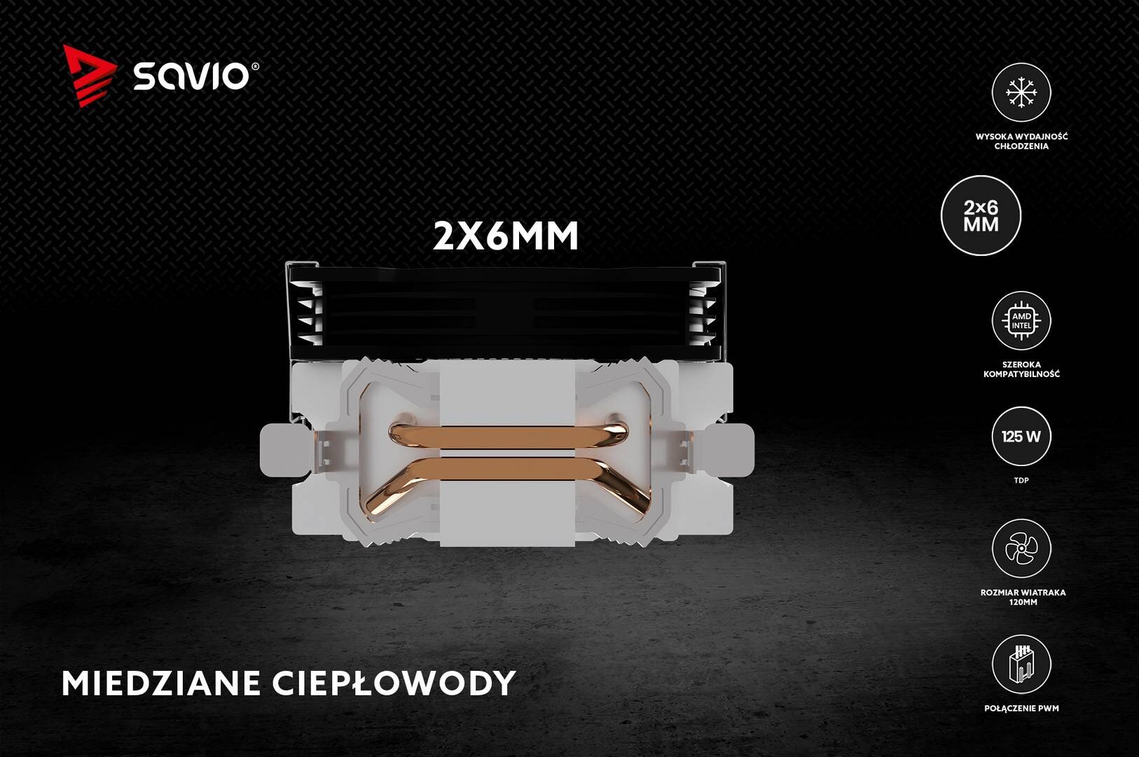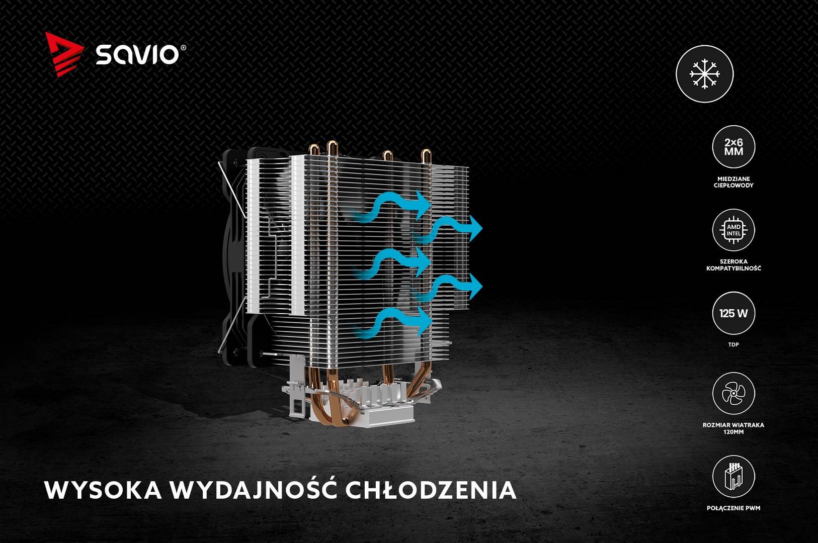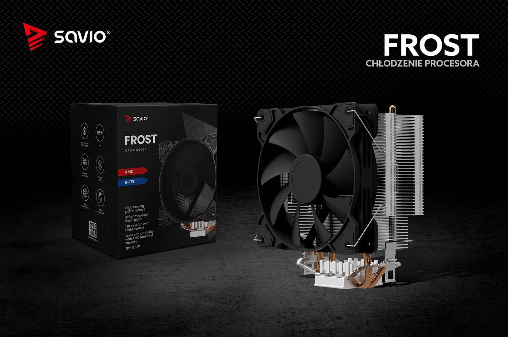 SAVIO FROST to niezwykle wydajne chłodzenie powietrzne procesora, wyposażone w cichy wentylator, który zapewnia niemal bezgłośną pracę oraz optymalny przepływ powietrza. Zastosowane technologie zapewniają wyróżniające się parametry pracy oraz wysoką efektywność. Dodatkową zaletą chłodzenia są jego wymiary 140x128x76mm, co przekłada się na dużą kompatybilność z różnymi typami obudów.