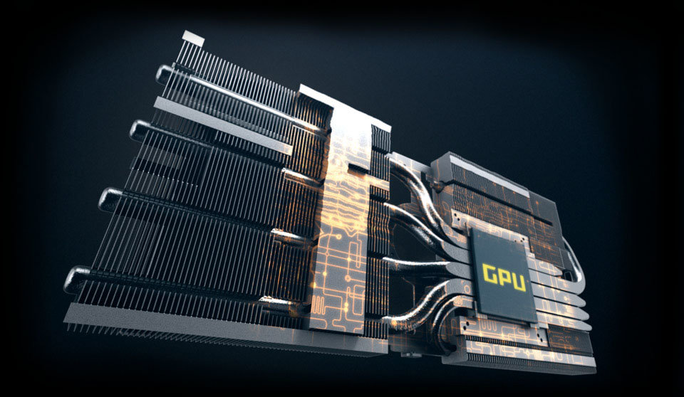 Ekskluzywna technologia chłodzenia DirectCU III została wyposażona w kontaktowe rurki grzejne Direct-GPU, które odprowadzają od procesora więcej ciepła i wyróżniają się bardziej wydajną konstrukcją, dzięki czemu uzyskujesz o 30% niższą temperaturę podczas grania.