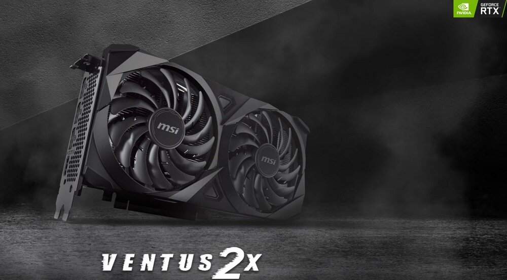 Niekwestionowaną zaletą karty graficznej MSI GeForce RTX3060Ti Ventus 2X V1 LHR jest zabudowany w niej system chłodzenia. Składa się on z dwóch odpowiednio wyprofilowanych wentylatorów, z których każdy zapewnia optymalną siłę ciągu i to nawet przy minimalnych obrotach. Warto też zwrócić uwagę na fakt, że komponent ten dostosowuje - dzięki rozbudowanym czujnikom - prędkość obrotową wentylatorów do aktualnych potrzeb procesora.