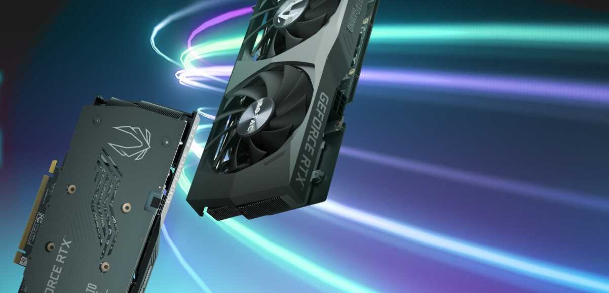 Karta graficzna ZOTAC GeForce RTX 3050 AMP 8GB wyposażony został w zestaw dwóch wentylatorów, które - współpracując ze sobą - tworzą razem wydajny układ chłodzenia aktywnego. Aktywuje się on w momencie przekroczenia przez układ temperatury progowej. Wystarczy chwila, by jego odpowiednio ukształtowane łopatki szybko i sprawnie obniżyły temperaturę nawet bardzo obciążonej karty graficznej. Na koniec warto dodać, że wentylatory nie generują nadmiernego hałasu i pozwalają zaoszczędzić nieco energii.