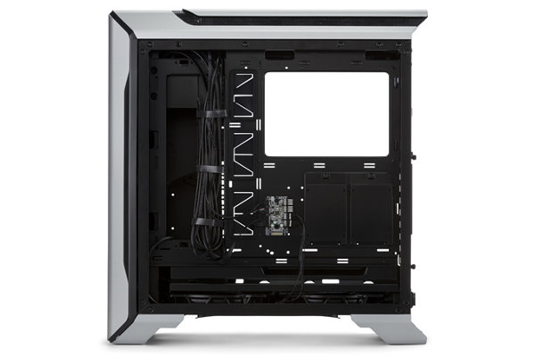 TECHNOLOGIA REDUKCJI HAŁASUKonstrukcja paneli została zaprojektowana z myślą zmniejszenia hałasu. Dwa wentylatory 2x 200 mm przenoszą większe objętości powietrza w porównaniu z mniejszymi radiatorami przy mniejszych obrotach, dzięki czemu mogą pracować ciszej. Dedykowany suwak wydajności wentylatora znajduje się na panelu I/O. OBROTOWY UCHWYT PCIPanel montażowy PCI można obrócić o 90 stopni. Pozwala to na unikalną możliwość montażu wielu kart graficznych w pionie lub z większym odstępem od szklanego panelu bocznego. * Kabel Riser nie jest dołączony do zestawu. | ![]() |