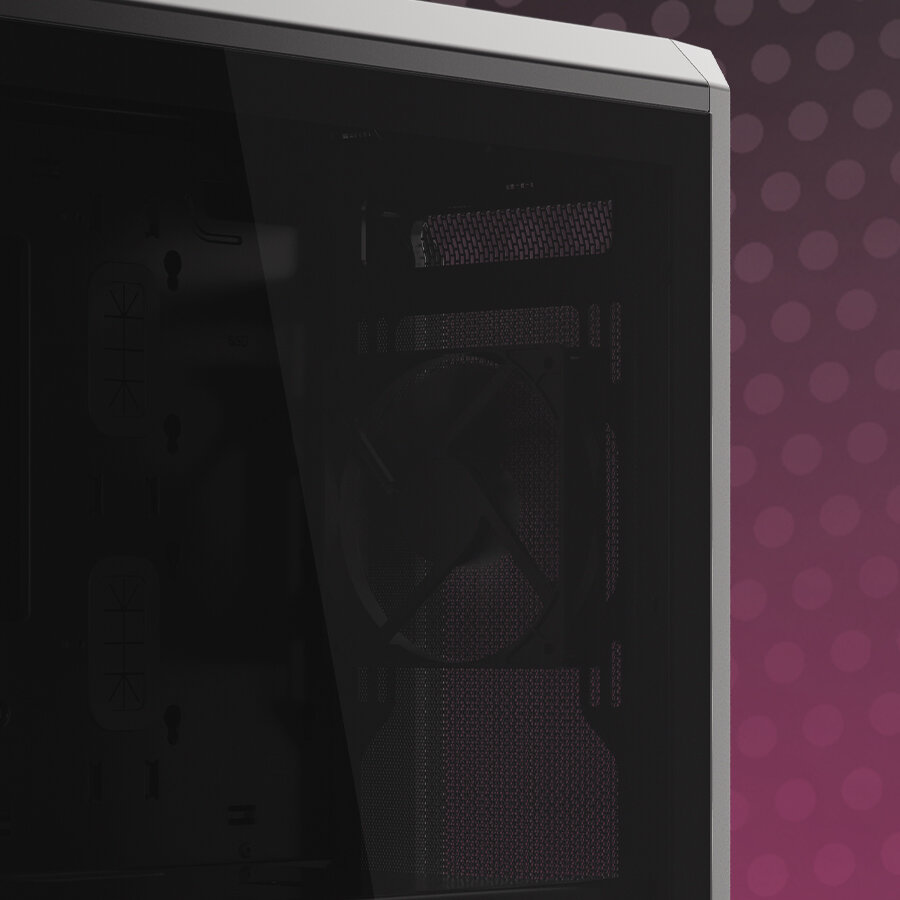 Wykonana z wysokiej jakości materiałów obudowa zachwyca swoim wyglądem. Odkryte wnętrze, dzięki bocznemu panelowi ze szkła hartowanego, pozostawia wiele przestrzeni do personalizacji Twojego PC. Perforowany front z bocznymi elementami ze szczotkowanego aluminium sprawiają, że obudowa wygląda niezwykle estetycznie i elegancko. Agresywna sylwetka obudowy jednoznacznie wskazuje do czego została stworzona.