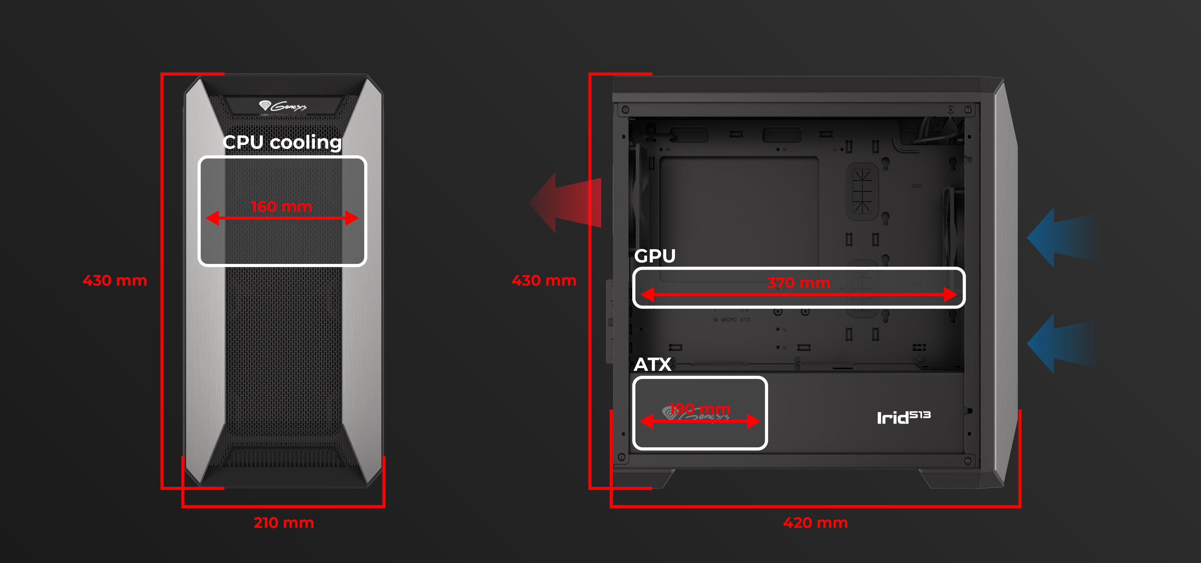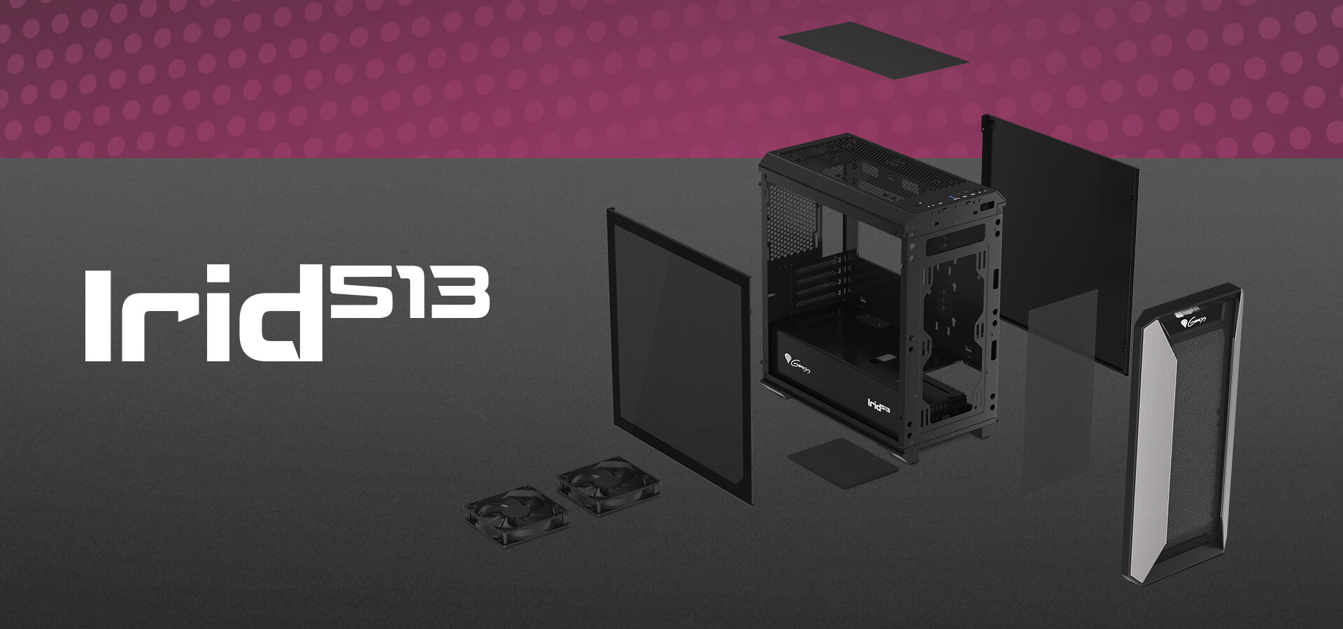 Obudowa na którą czekałeś! Przemyślana konstrukcja obudowy oraz cyrkulacji powietrza, mały rozmiar zewnętrzny, duża przestrzeń wewnątrz, wysoka jakość materiałów i wykonania oraz niepowtarzalny design – to jest właśnie Genesis IRID 513.