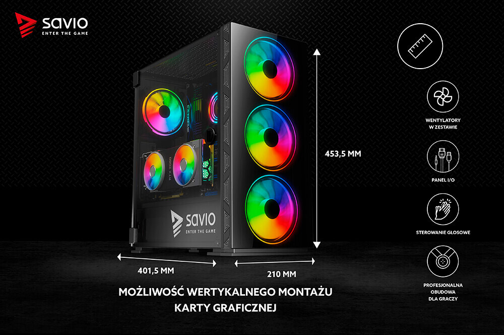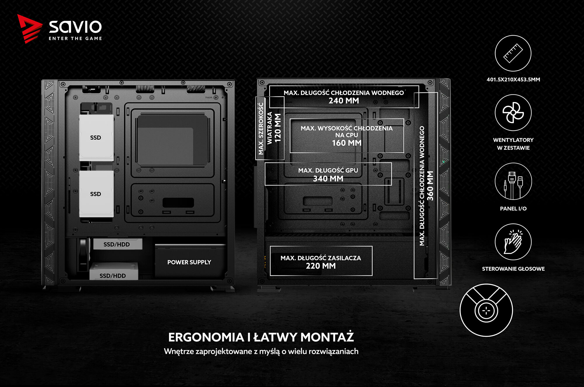 Prawdziwa siła ma wartość wtedy, kiedy możesz ją kontrolować. Savio Prime pozwoli Ci to osiągnąć. Niezależnie od tego, jaką konfiguracją dysponujesz, ta innowacyjna obudowa zapewni jej wysoką wydajność nawet podczas najbardziej intensywnej rozgrywki.