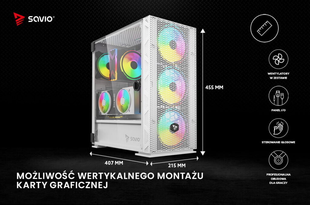 - Obudowa SAVIO Raptor White X1 ARGB Biały