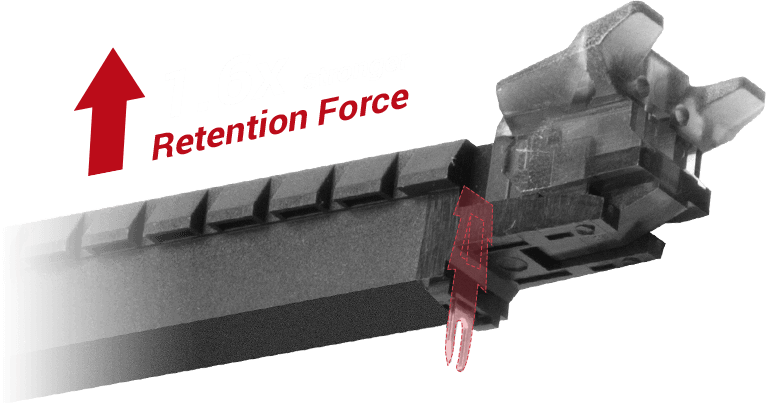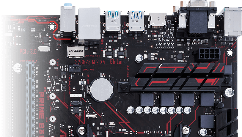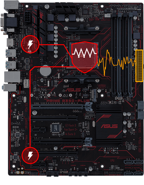 ASUS posiada gniazdo PCIe SafeSlot Core na wyłączność. Safeslot Core ma wzmocnioną konstrukcję przymocowaną do płyty głównej specjalnym zaczepem, zapewnia 1,6 razy silniejszą retencję i 1,3 razy lepszą odporność na ścieranie niż standardowe gniazda rozszerzające. Płyty główne ASUS Prime mają wzmocnione złączenia przy modułach PCIe oraz DIMM.