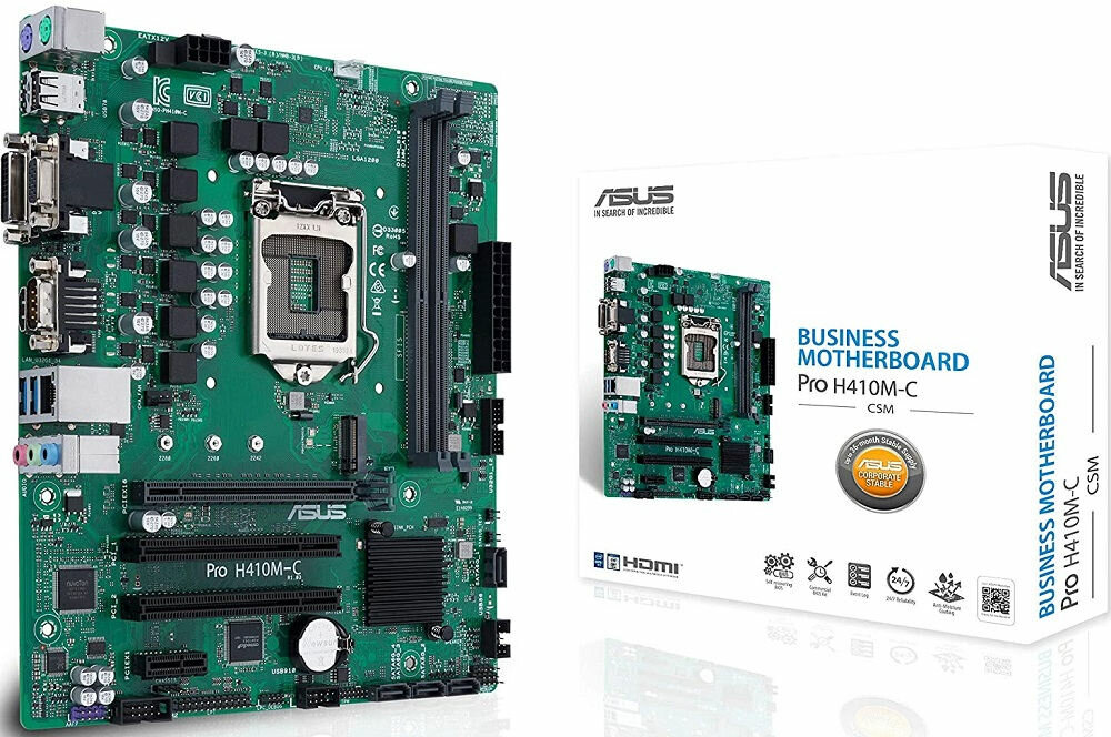 ASUS to najbardziej znany i ceniony producent płyt głównych, który w swojej ofercie posiada również rozwiązania dla biznesu (w tym korporacji). Przykładem na to jest model ASUS Pro H410M-C-CSM, który posiada funkcje usprawniające operacje IT i będzie doskonale współpracował zarówno z procesorami Celeron i Pentium, jak też Core i3, Core i5 czy Core i7. Co więcej, dostarczany jest z oprogramowaniem ASUS Control Center Express, umożliwiające zarządzanie IT klasy serwerowej.