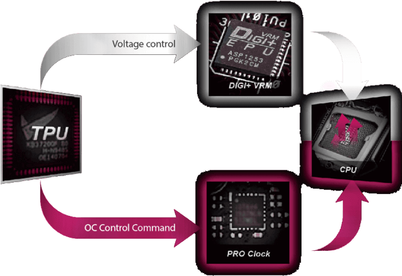 Dedykowany generator zegara bazowego zaprojektowany dla procesorów Intel® ósmej generacji pozwala podkręcić zegar bazowy do częstotliwości 432 MHz*, a nawet wyższej. To niestandardowe rozwiązanie współpracuje z układem ASUS TurboV Processing Unit (TPU) w celu zwiększenia kontroli podkręcania napięcia i zegara bazowego, co w rezultacie daje zupełnie nową metodę zwiększania wydajności systemu, aż do ekstremalnych wyników.