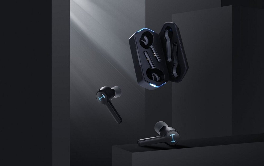Nowoczesna forma i minimalistyczny design sprawiają, że słuchawki prezentują się naprawdę dobrze. Posiadają też efektowne, niebieskie podświetlenie LED, które zostało umieszczone na słuchawkach i etui ładującym. To nie wszystko — zestaw obejmuje 2 rodzaje nakładek gumowych: do słuchania muzyki i do grania.